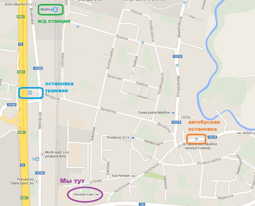 Трамвай – Трамвай самый медленный способ добраться до города, но безусловно самый живописный. Если Вам некуда спешить, эта поездка доставим Вас большое удовольствие. Более подробную информацию и расписание можно найти на сайте: jizdnirady.idnes.cz/brno/spojeni/